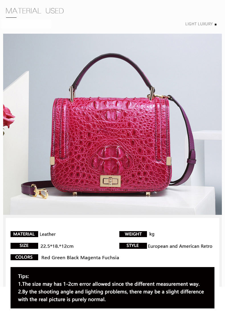 2022 New Design Leather Women's Handbags 100% Genuine Crocodile Leather Shoulder Messenger Bags Luxu
