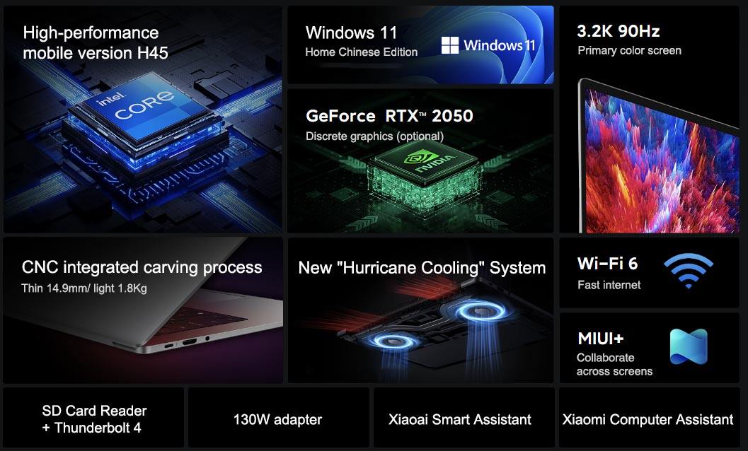 2022 New Xiaomi RedmiBook Pro 15 2022 Laptop 12th Intel i7 12650H/i5 12450H 16GB+512GB RTX 2050 3.2K