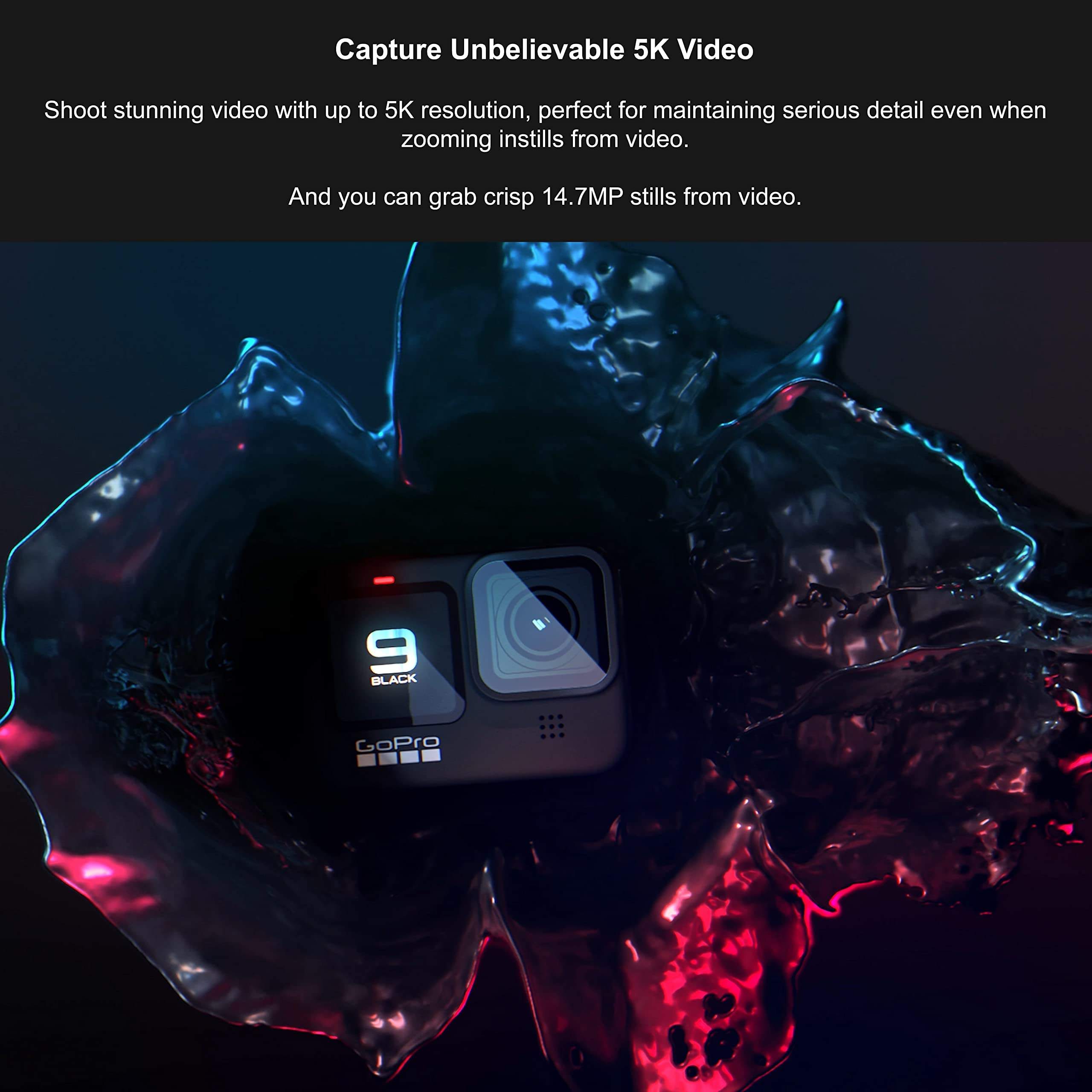 【5K VIDEO】 - Shoot stunning video with up to 5K resolution, perfect for maintaining serious detail even when zooming in. Packing a new 23.6MP sensor that’s an absolute powerhouse, HERO9 Black brings lifelike image sharpness, fluid motion and in-camera horizon leveling that always impresses. 【20 MP PHOTO WITH SUPERPHOTO】 - Capture crisp, pro-quality photos with 20MP clarity. And with SuperPhoto, HERO9 Black can automatically pick all the best image processing for you, so it’s super easy to nail the shot. 【FRONT DISPLAY + REAR TOUCH SCREEN】 - A new, larger rear touch screen with touch zoom on HERO9 Black should feel instantly familiar and a dazzling new front display makes for easy framing and intuitive camera control. 【POWERFUL BATTERY】 - 30% longer battery life is here thanks to a larger 1720mAh battery. This lets you shoot more without having to swap out batteries and packs enough juice to power your camera through the cold. 【HYPERSMOOTH 3.0】 - Experience ultimate smoothness with our most advanced video stabilization ever. HyperSmooth 3.0 enables in-camera horizon leveling and boost in all settings.