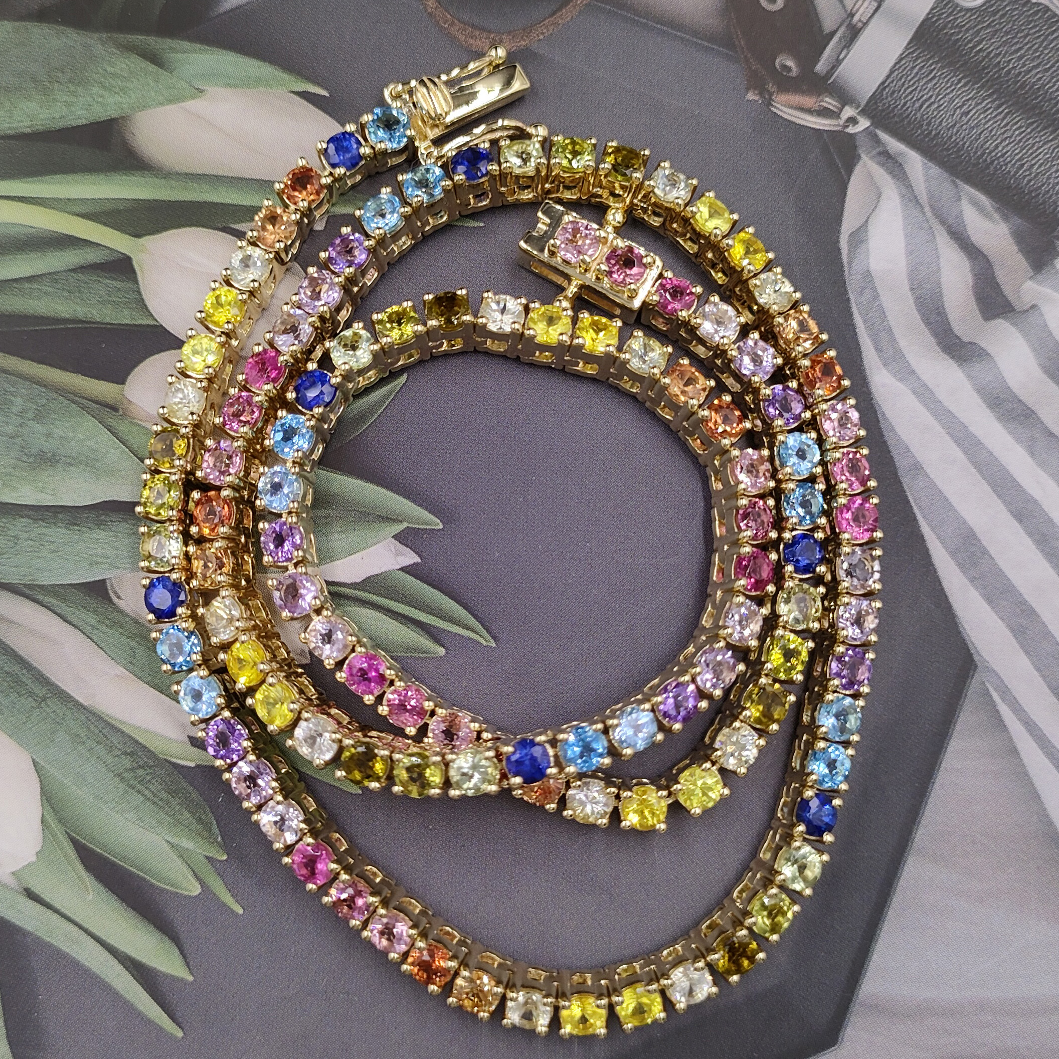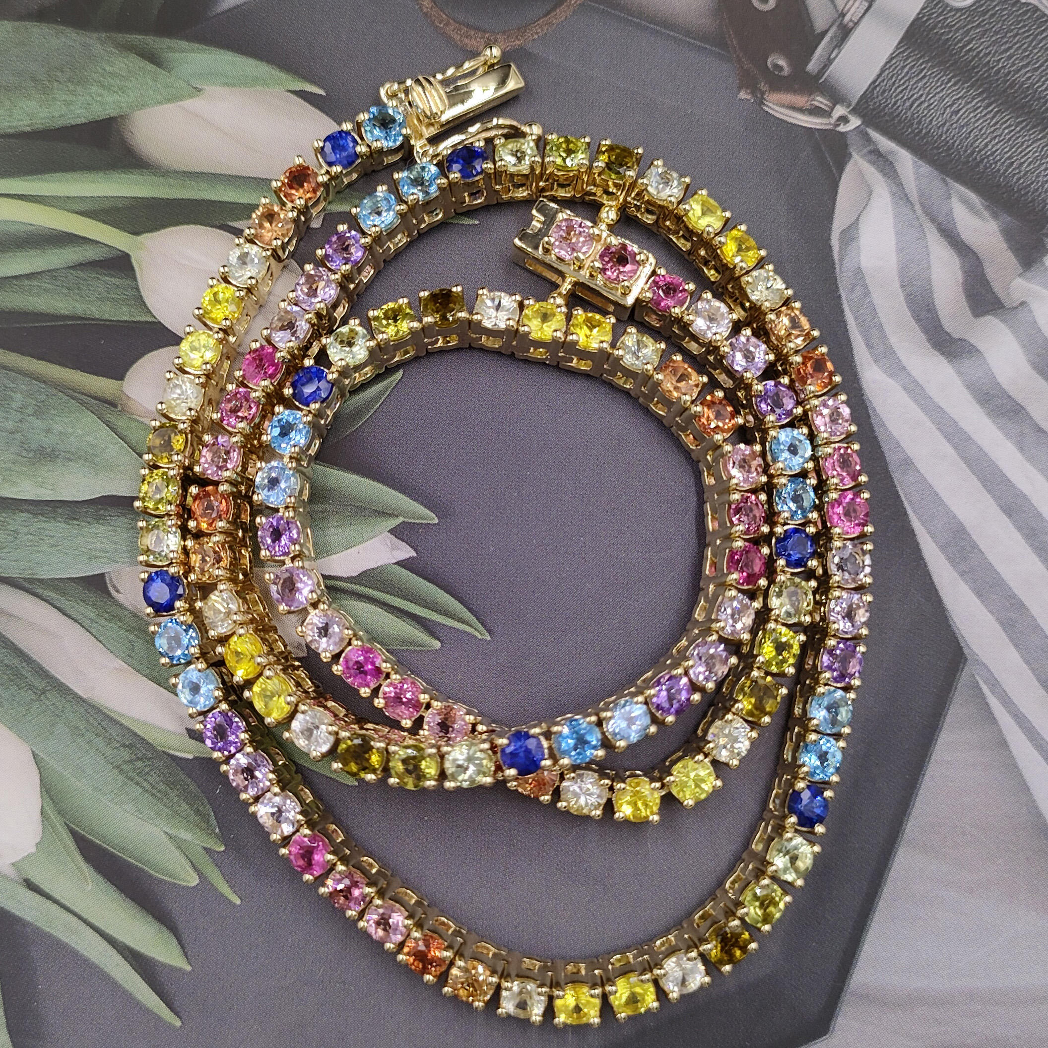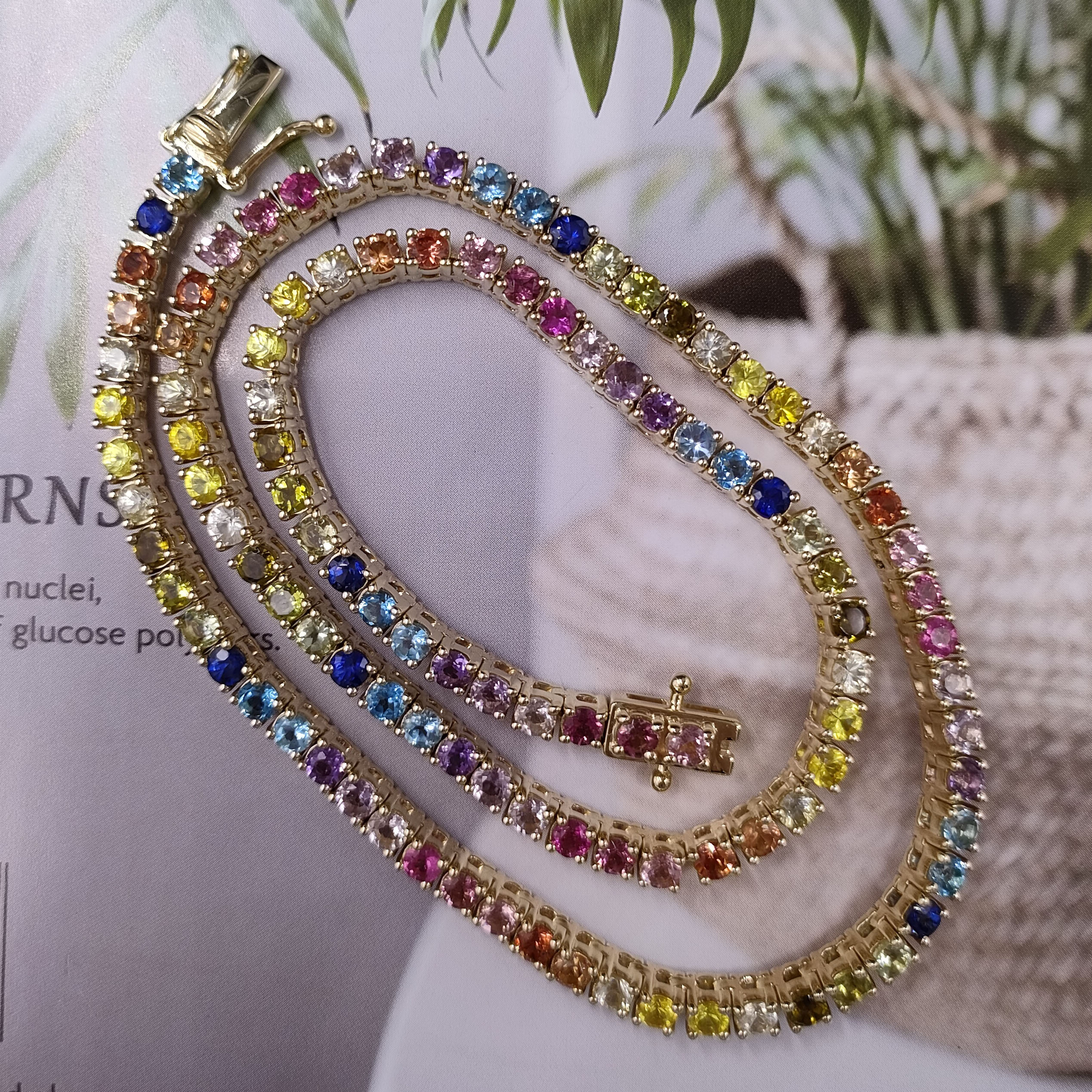 A&N Jewelry Wholesale Custom 14k Gold Chain Colorful Rainbow Tennis Chain