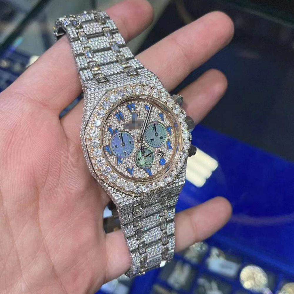 Custom Mens Women Watches Iced Out Luxury Fashion Bling Dial Bezel Band VVS Moissanite Watch