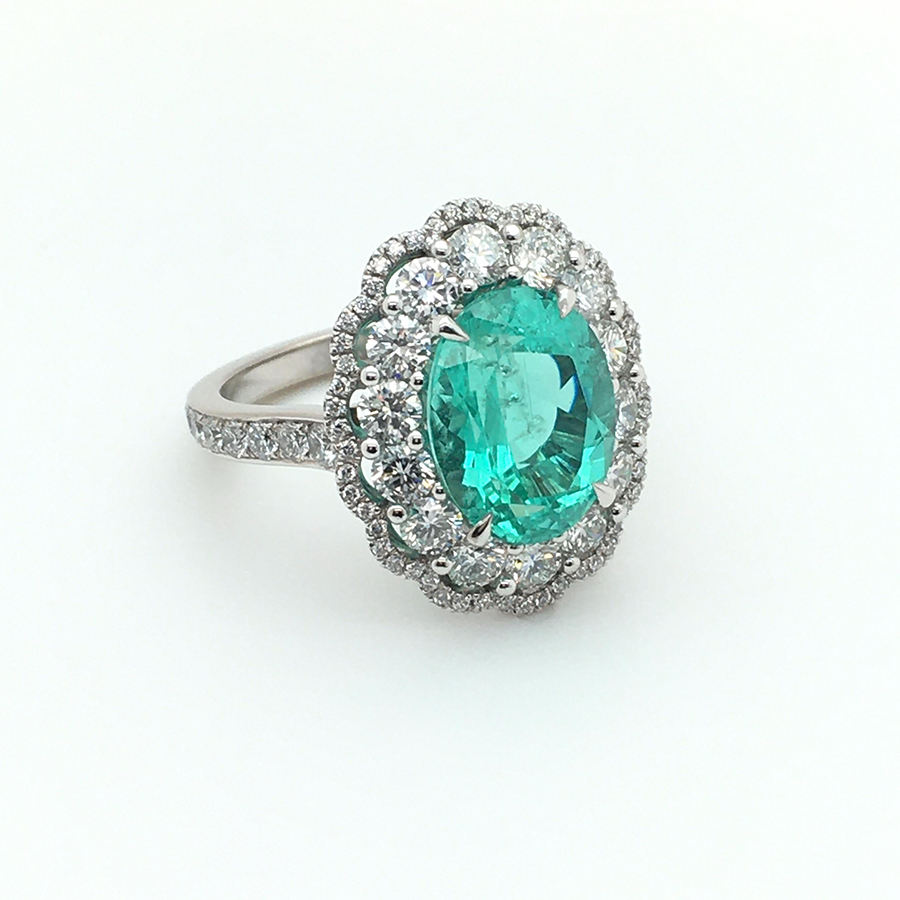 Custom Real Gold Jewelry 3.82 Carat Oval Paraiba Tourmaline And Diamond Daisy Cluster Gold Rings In