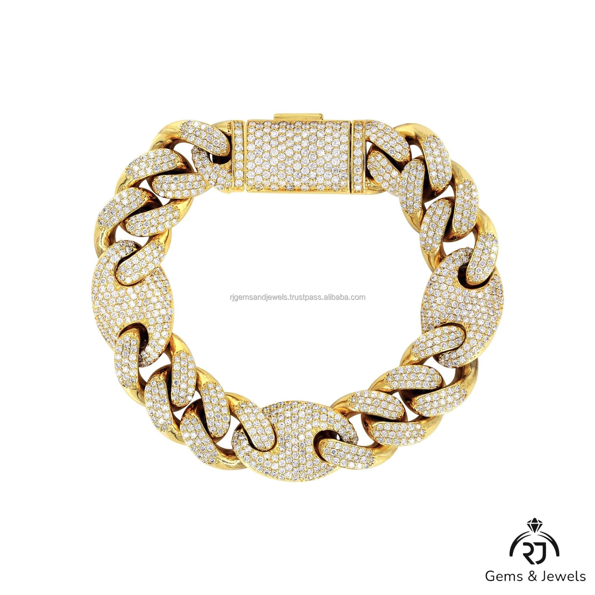 Custom VS-SI Natural Diamond Cuban Link Bracelet 10mm 20mm Hip Hop Necklace Men 925, 10k to 14k Gol