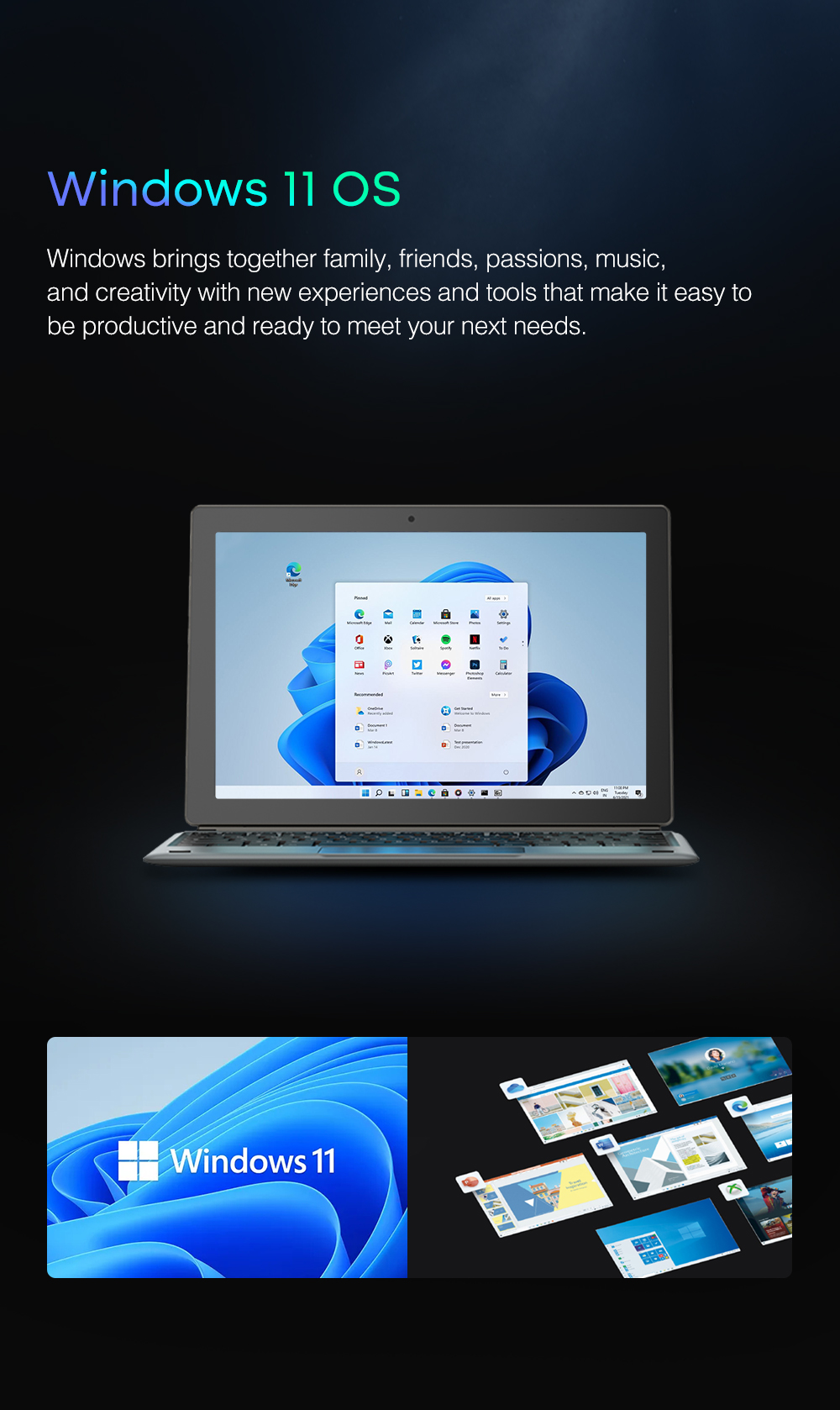 D10 Tablet Laptop 10.1 Inch 2 in 1 Intel Celeron N5100 8GB RAM 256GB SSD Portable FHD IPS Touch Screen Windows 11 Notebook PC