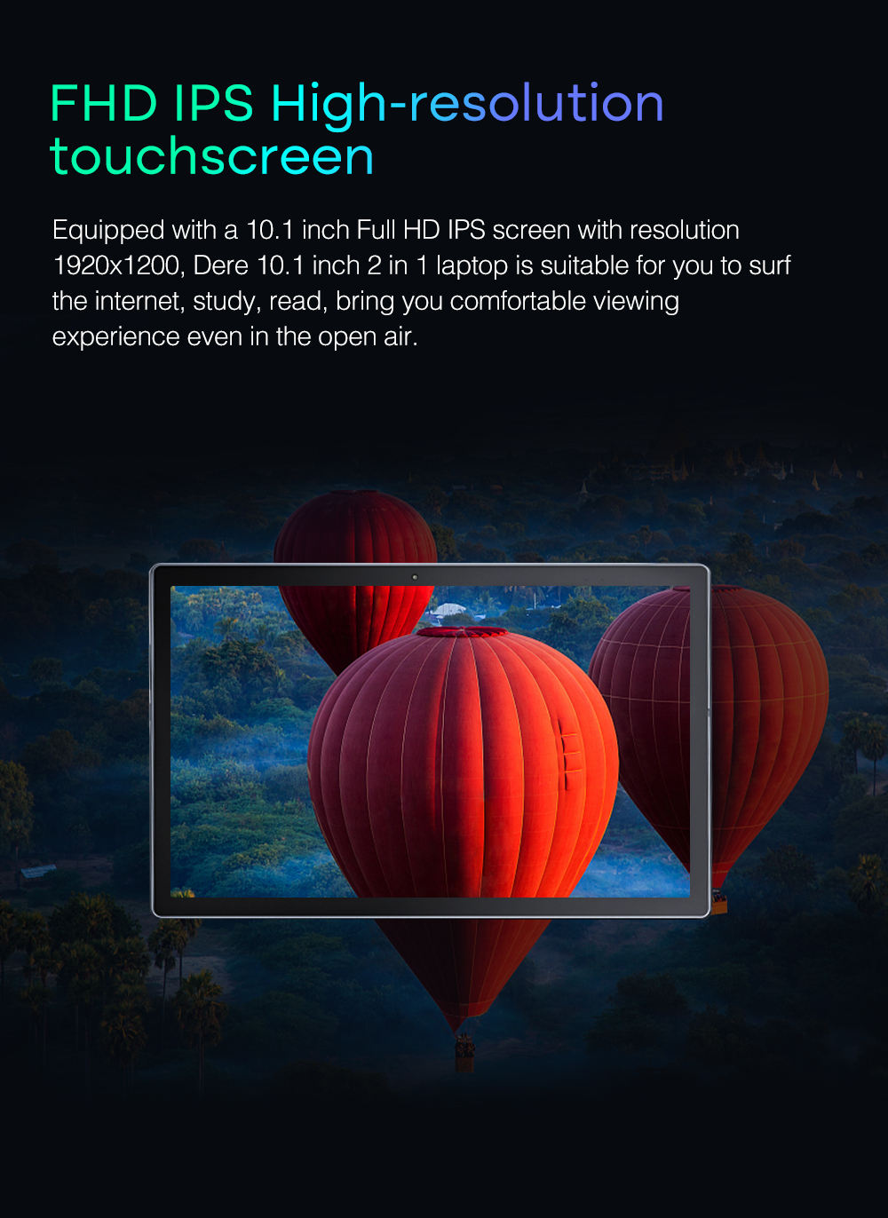 D10 Tablet Laptop 10.1 Inch 2 in 1 Intel Celeron N5100 8GB RAM 256GB SSD Portable FHD IPS Touch Scre