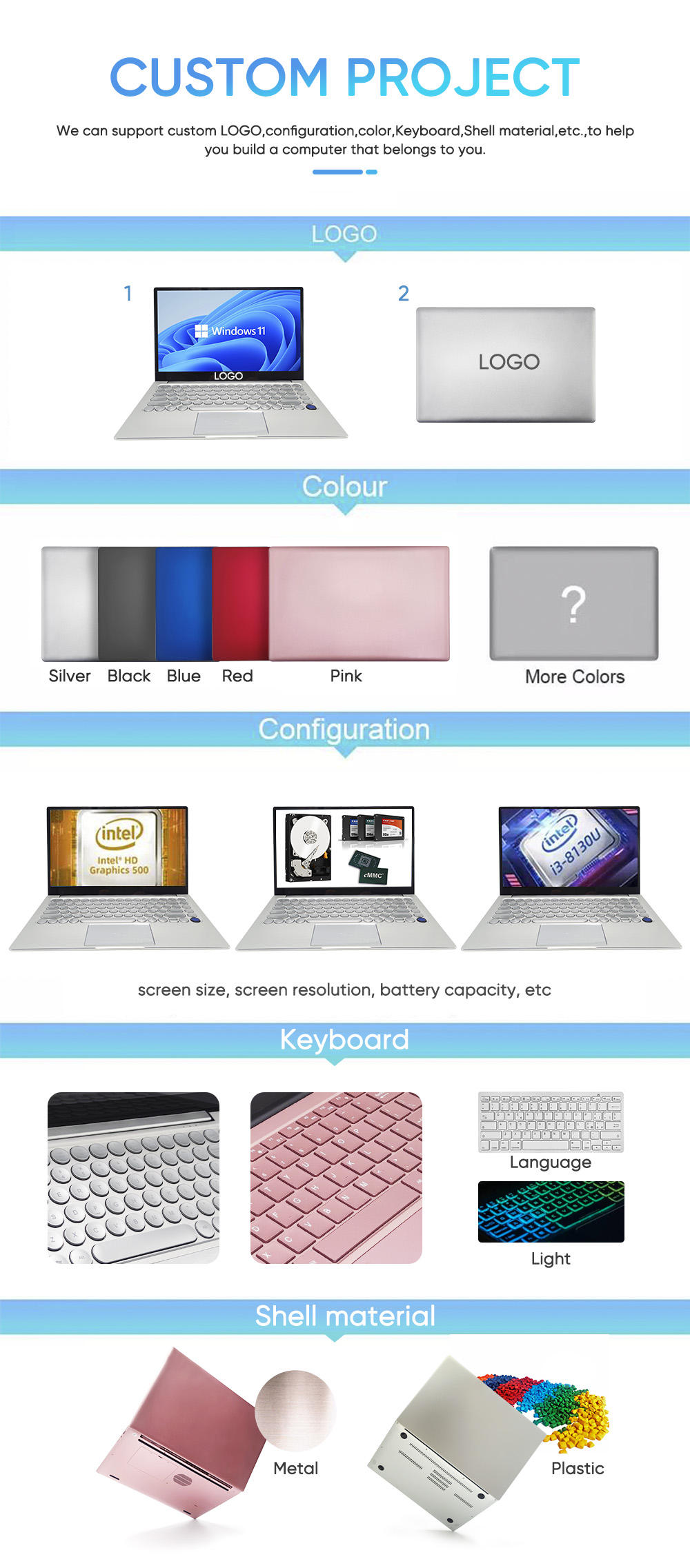This series has three different sizes, 12.3'' / 14.1'' / 15.6''. Besides, we accept customization, including logo, color,