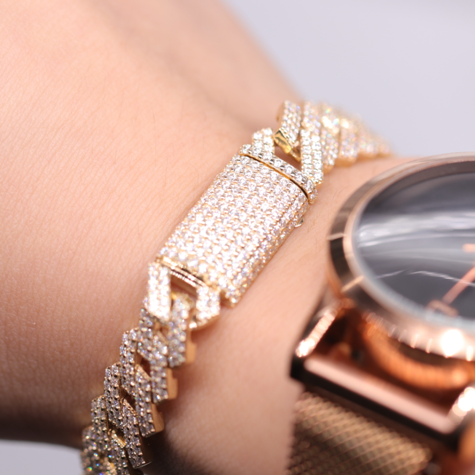 Hip Hop Jewelry Iced Out 7 Inches 10K Gold Cuban Link WhiteVVS Pass Diamond Tester Moissanite Cuban