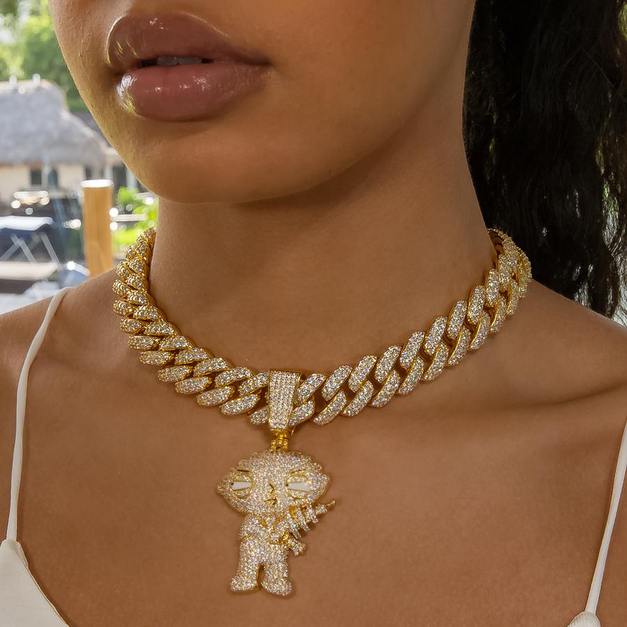 Hot Sale Hip-Hop Style Miami Cuban Chain Iced Out Moissanite Diamond Carton Pendant Handmade Jewelry