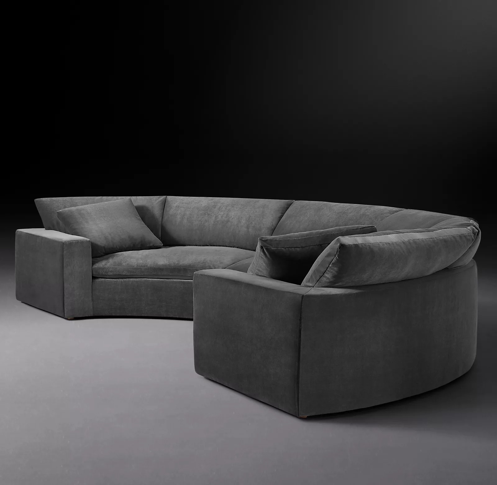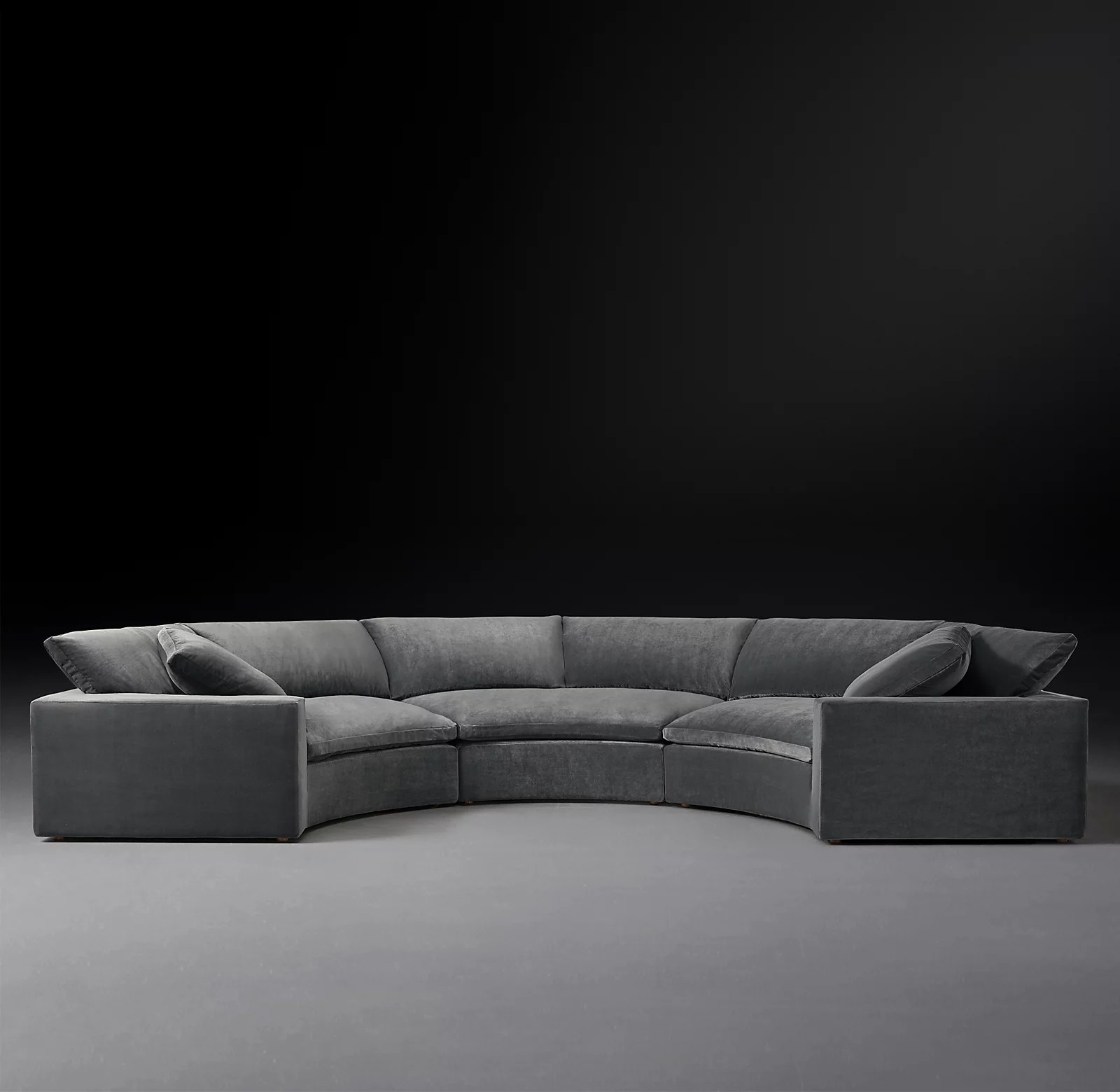 The world's ultimate sofa, Cluod's configurable design nods to the relaxed modernism of the mid-20th century, while its comfort is simply unparalleled. Built for laidback lounging, our more sculptural silhouette features substantial track arms and deep, curved seats. Easy to customize, three simple slipcovered pieces – left-arm chair, armless chair and right-arm chair – available in a choice of two depths allow you to configure the seating that best suits your space. It's a modern marriage of versatility, perfect proportions and massive comfort.
