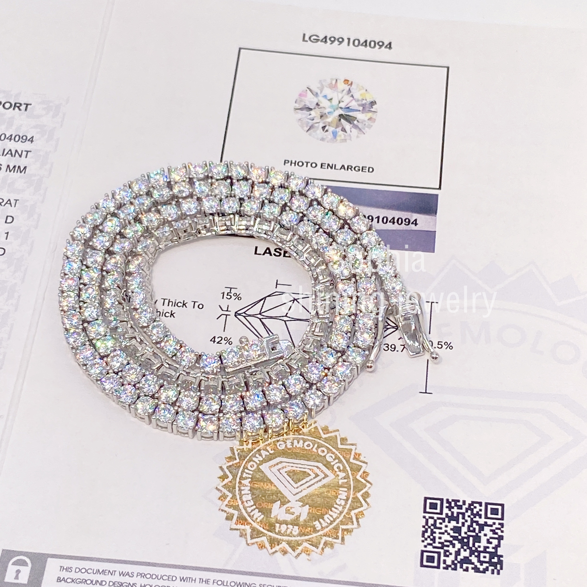 IGI Verified 3MM 18Inch Tennis Chain Necklace Lab Grown Diamonds Jewelry