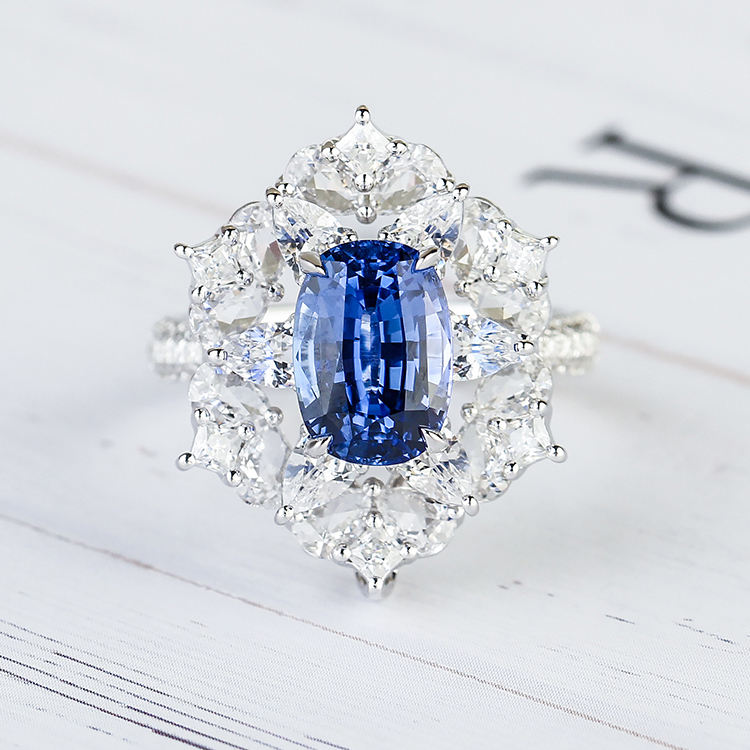 Luxurious Cultivated Sapphire Rings 14K Solid Gold Diamond Eternity Rings Jewelry Women