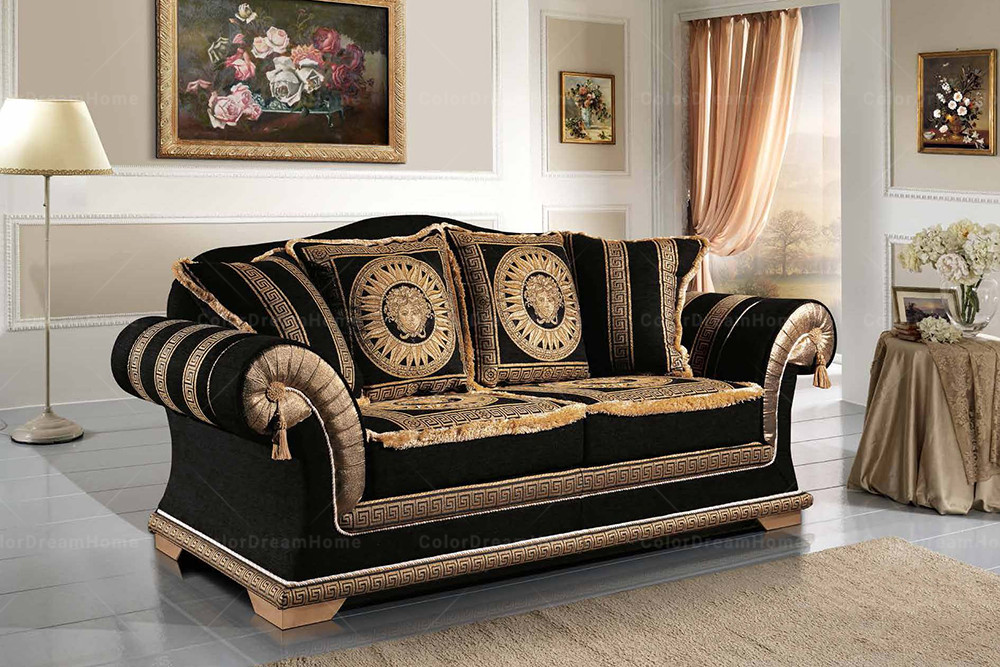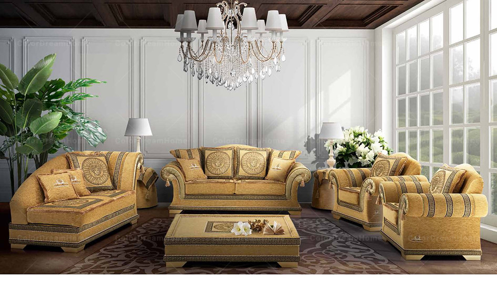 Ssolid wood, gold leaf, veneer, high grade fabric.