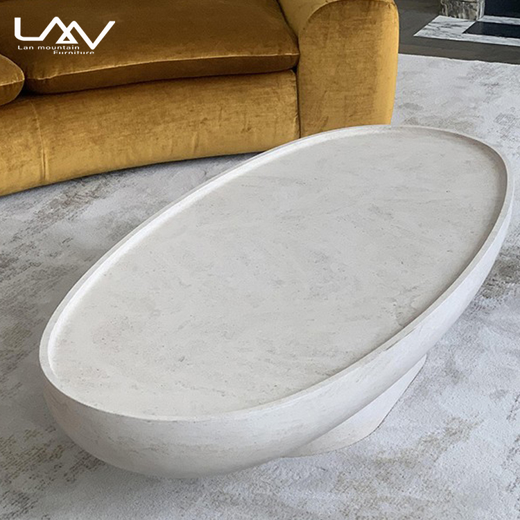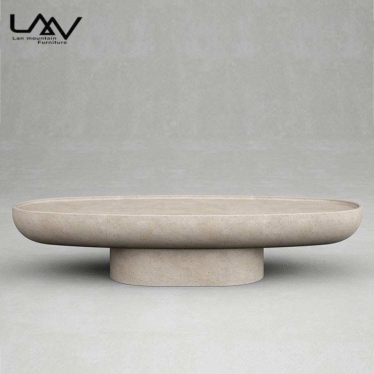 Modern simple design oval living room hotel villa natural travertine marble coffee table furniture