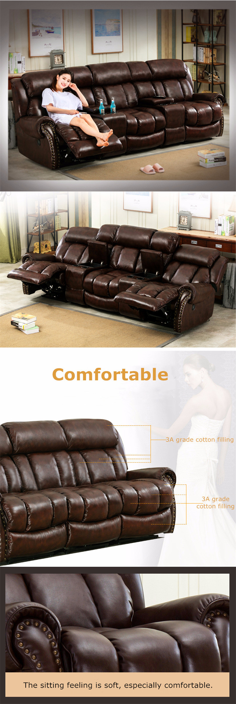 Nordic modern combination multi-functional audio-visual home furniture living room full grain cow l