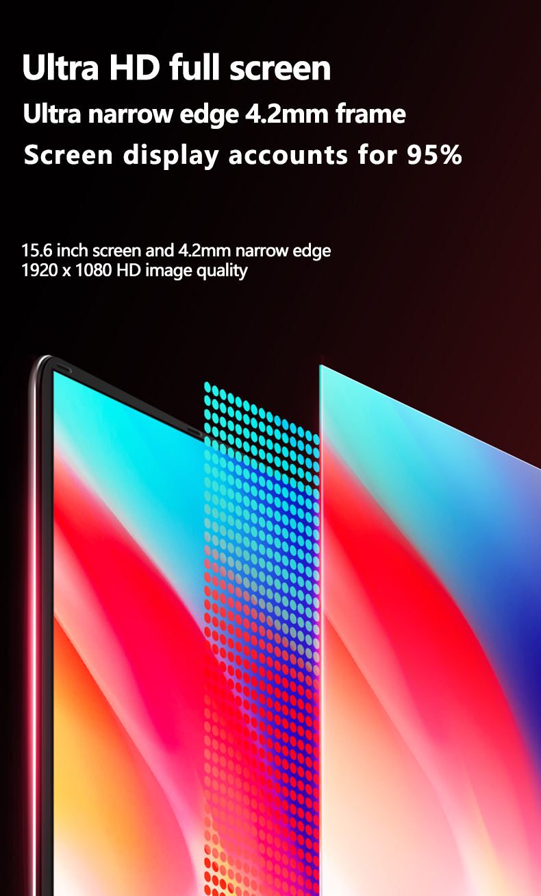 15.6-inch HD full screen, with 95% of the screen and 4.2mm ultra narrow frame on three sides, gives you a perfect visual experience