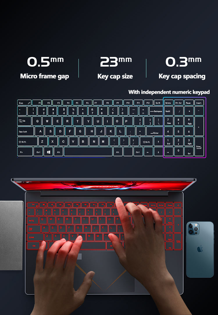 This laptop keyboard comes with a white backlight, which can be used at night,And the keyboard has an independent numeric key area.