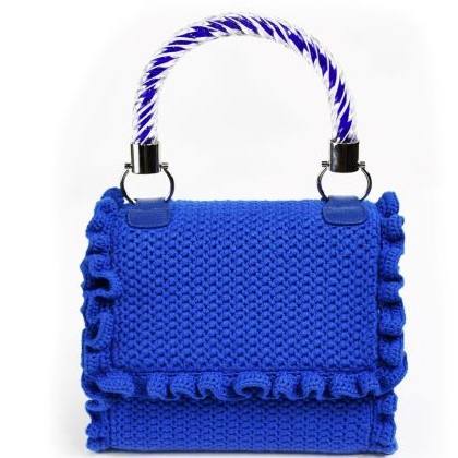 ROSALBA LEATHER CROCHET BLUE Luxury Bag Made in Italy