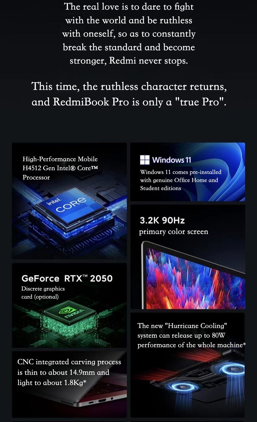 Xiaomi Redmi Book Pro 15 2022 Laptop i7 RTX 2050 with 72Wh Flash Charger 15.6 Inch Screen 3.2K Slim