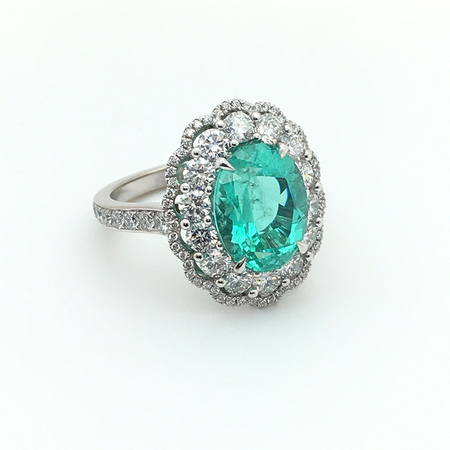 Custom Real Gold Jewelry 3.82 Carat Oval Paraiba Tourmaline And Diamond Daisy Cluster Gold Rings In