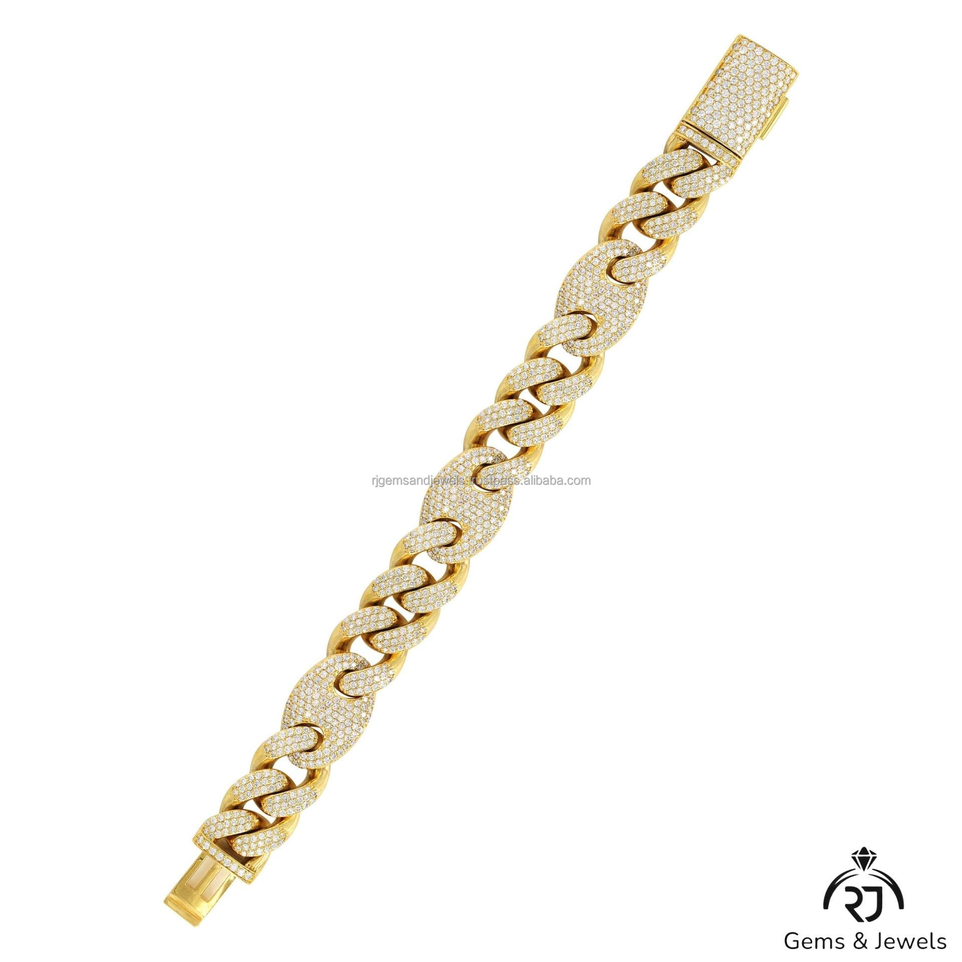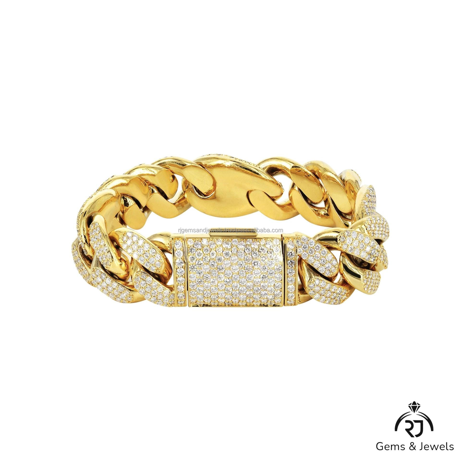 Custom VS-SI Natural Diamond Cuban Link Bracelet 10mm 20mm Hip Hop Necklace Men 925, 10k to 14k Gol
