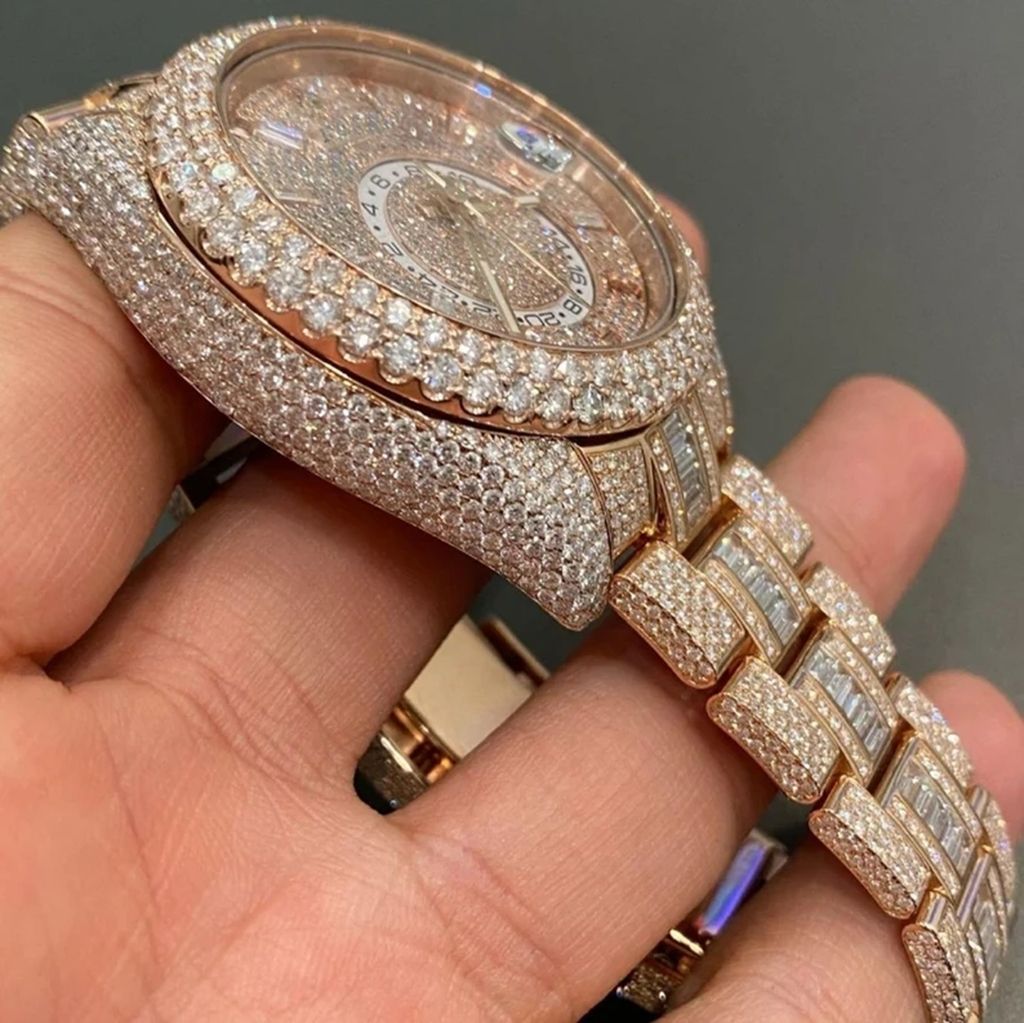 Hip Hop Iced Out VVS Moissanite Diamond Watch Stainless Steel Custom Logo Mechanical Watch For Men