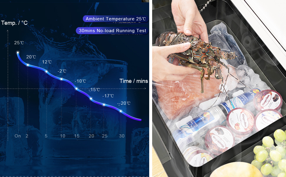 1. Dual zones: Freezer and Refrigerator compartment. Lowest temperature range: -20℃(-4℉)