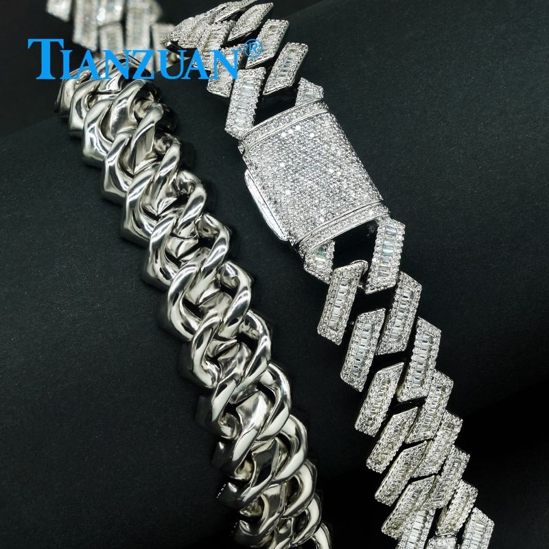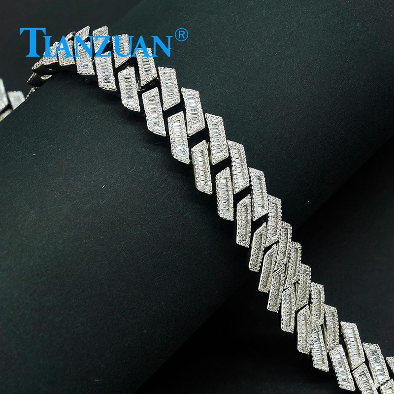 Necklace 18mm Wide trapezoidal rhombic baguette S925 silver Cuban Link Iced Out Hip Hop Moissanite L