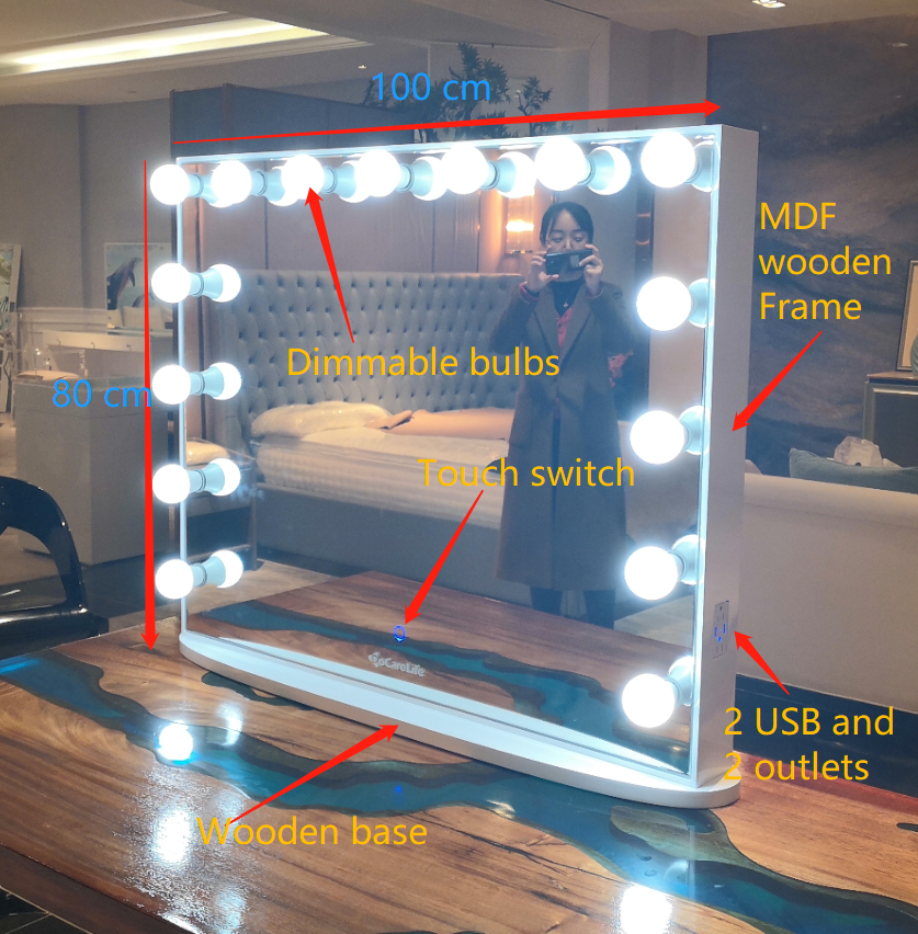 Stock in US! Docarelife 100*80cm Wooden Bedroom Furniture Dresser Hollywood LED Lighting Vanity Makeup Mirror